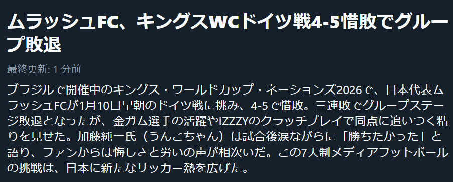 でもこれだけ悔しいのは、キングスリーグがすごい盛り上がっているがゆえだと思っています。