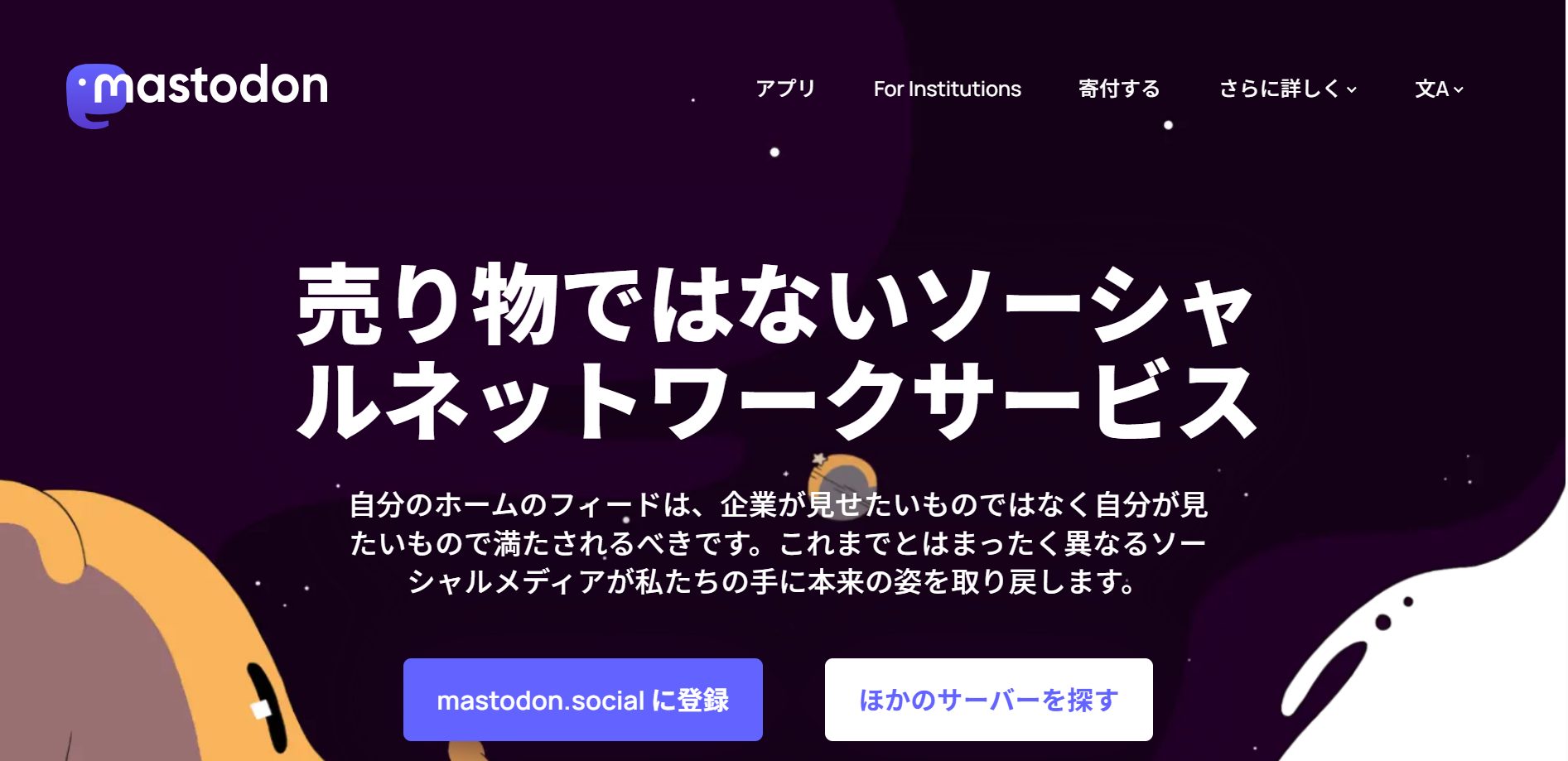 前置きが大変長くなりましたが、色々なSNSを私使ってみるタイプなのですが、おすすめはMastodonというSNSが使いやすいです。